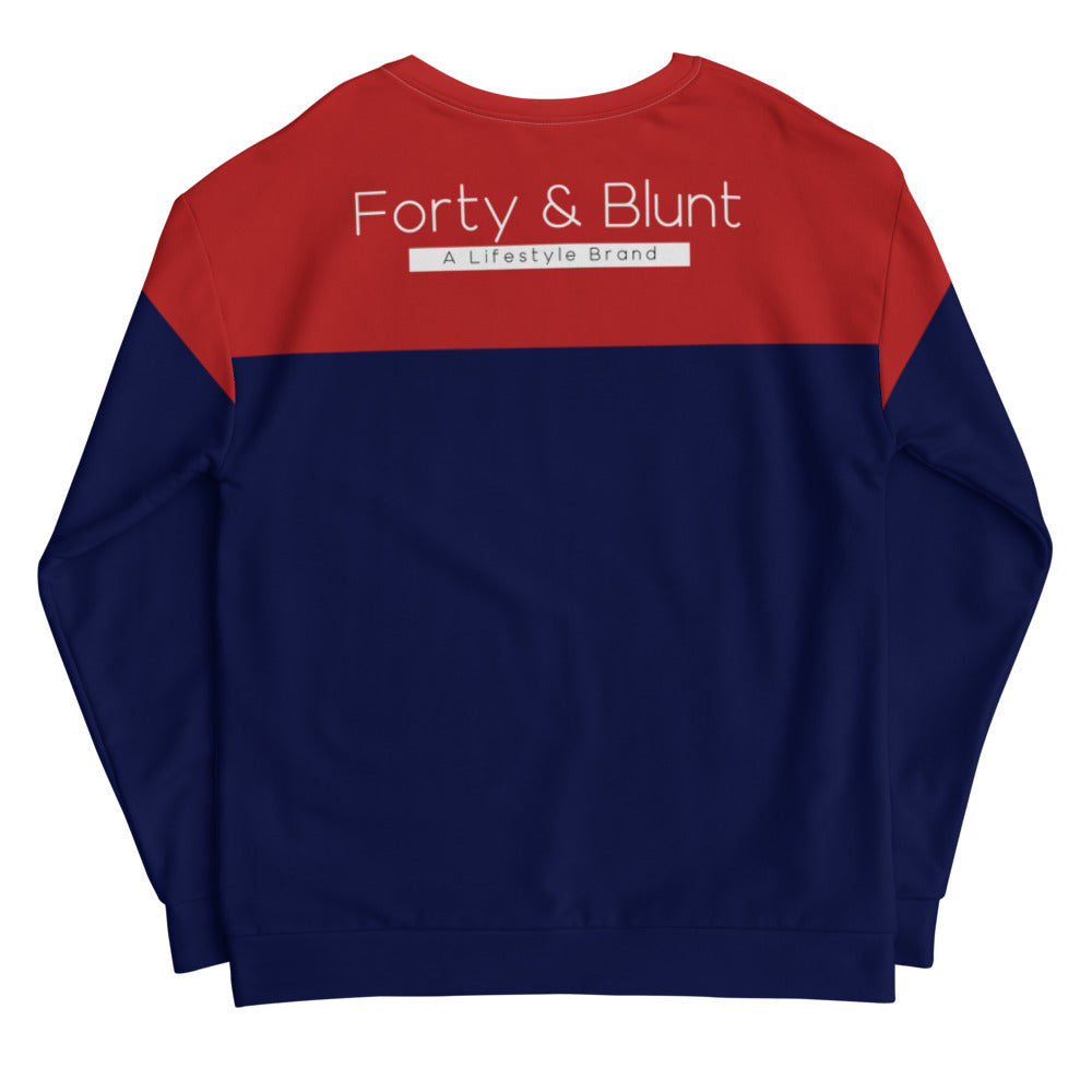 The Forty and Blunt Red and Blue Sweatshirt is precision-cut and hand-sewn to achieve the best possible. The durable fabric with a cotton-feel face and soft brushed fleece inside means that this sweatshirt is bound to become your favorite for a long time.